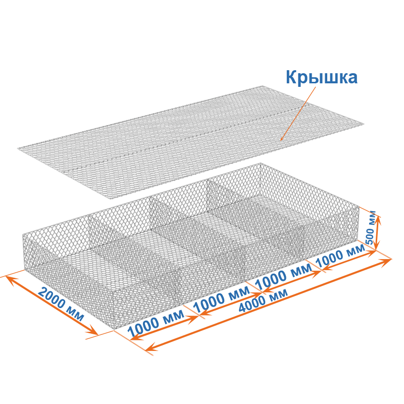 Габион матрац ГСИ-М 4х2х0,5 оцинкованный, Ø проволоки 3,0 мм, размер ячейки 8х10 см
