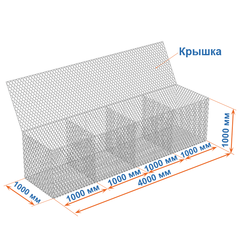 Габион 4х1х1 представляет собой коробчатый габион, который конструируется из сетки двойного кручения. После сборки, он наполняется камнем, либо другим материалом.