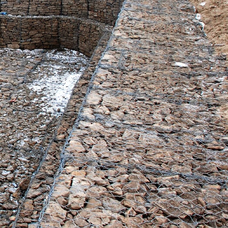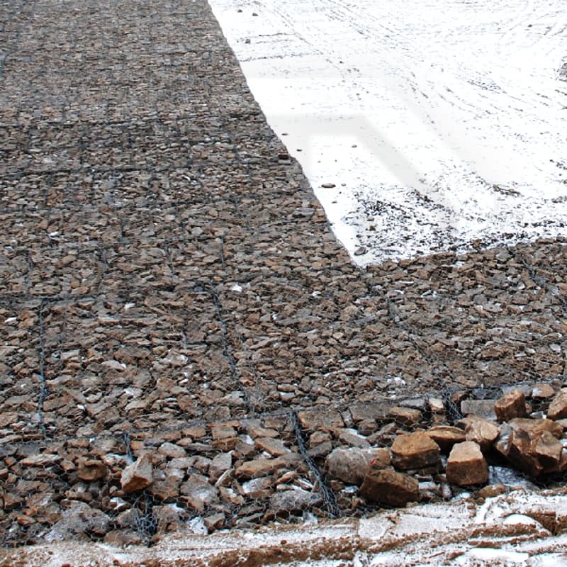 Пример применения: укрепление откосов и русел на типовых участках; заполнение камнем фракции крупнее 60х80, фиксация крышек и кромок после выверки отметок.