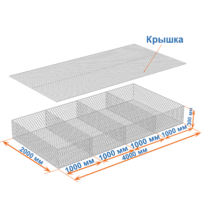 Габион матрац ГСИ-М 4х2х0,3 оцинкованный, Ø проволоки 2,7 мм, размер ячейки 8х10 см