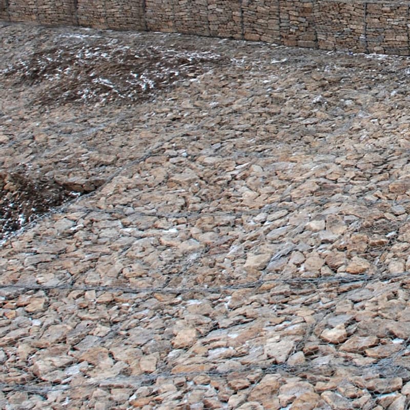 Пример применения: укрепление откосов и русел на типовых участках; заполнение камнем фракции крупнее 60х80, фиксация крышек и кромок после выверки отметок.