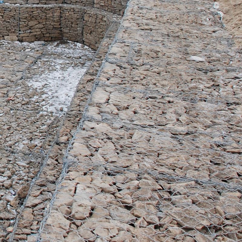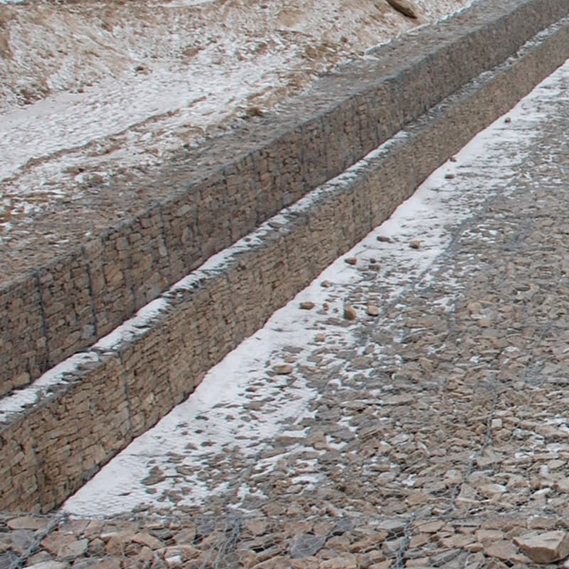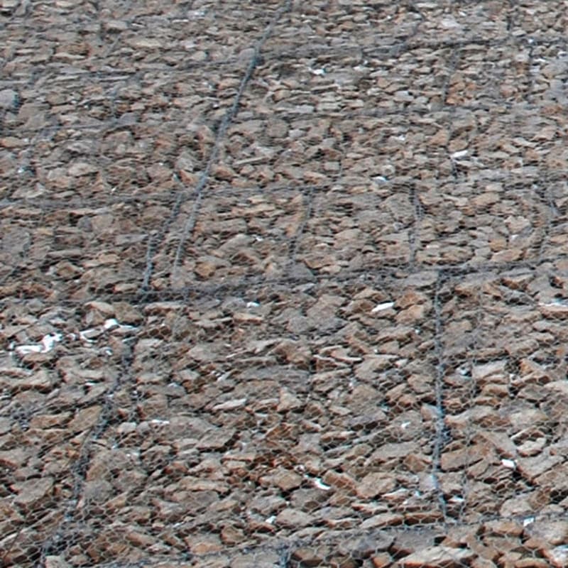 Пример применения: укрепление откосов и русел на типовых участках; заполнение камнем фракции крупнее 60х80, фиксация крышек и кромок после выверки отметок.