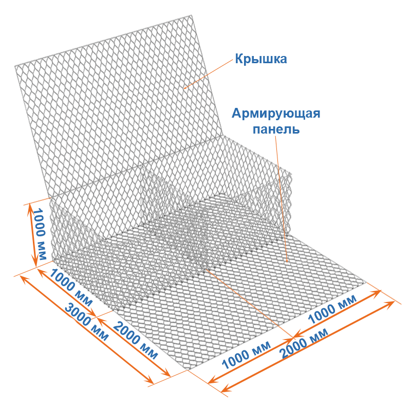 Состоит данный габион из основной части и армирующей панели, которая является продолжением основания конструкции.