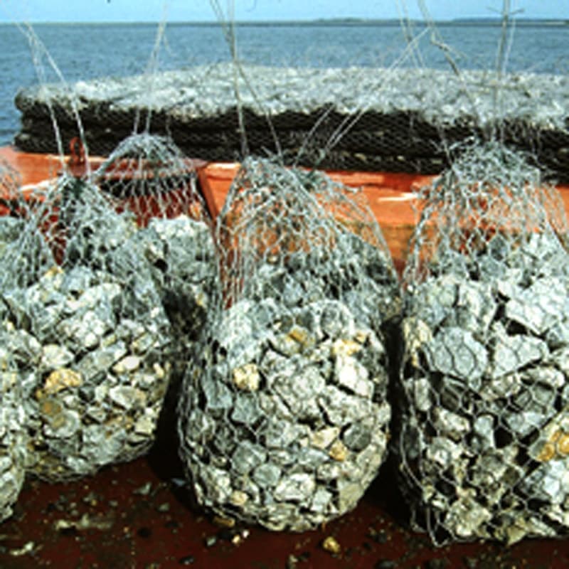 Конструкция габиона такова, что они распределяют нагрузку по всей поверхности сооружения, предотвращая разрушение. Используются цилиндрические габионы 2x0,95x0,94 для создания оснований подпорных стен и подводных фундаментов.