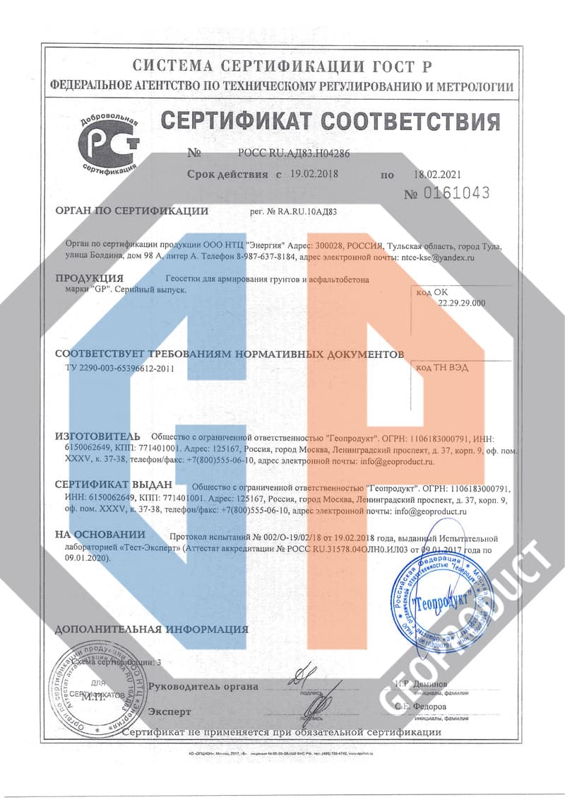 Геосетки изготавливаются из полиэфира, полиэтилена, полиамида, полиэстра, полипропилена или стекловолокна. Большинство физико-механических и химических характеристик сетки определяются свойствами сырья, из которого она была получена.