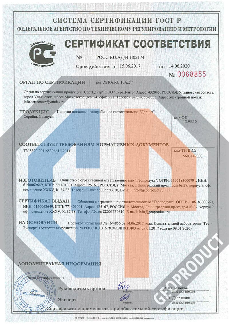 Геотекстиль GP, который производит компания «Геопродукт», соответствует всем необходимым стандартам качества.