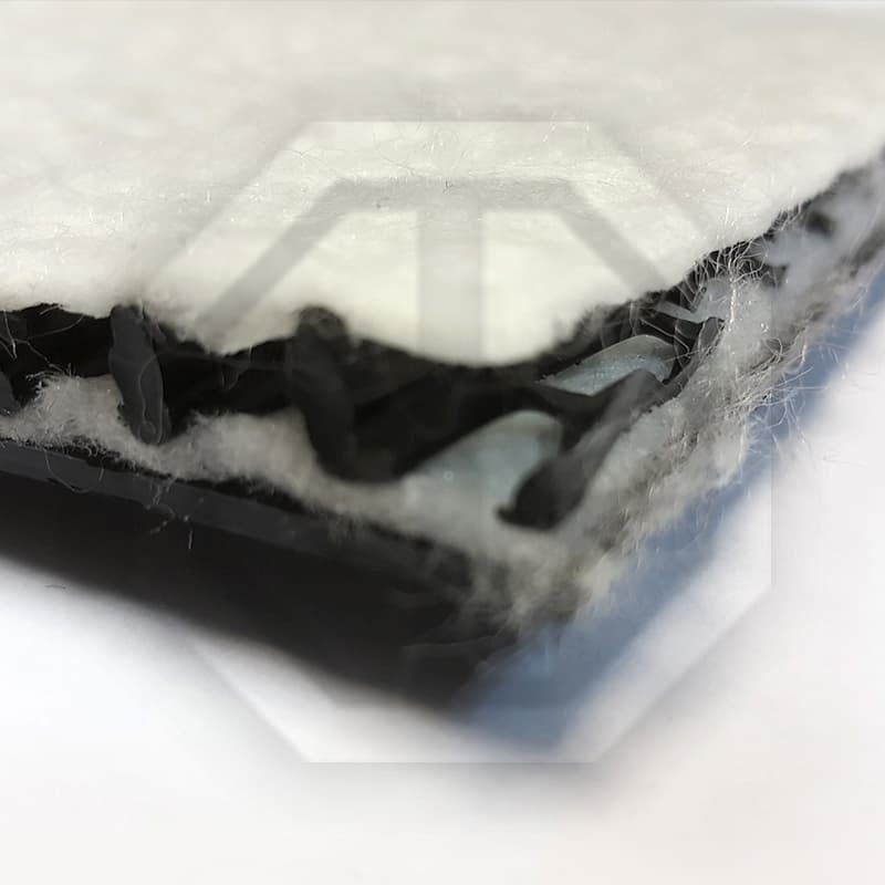 Гидромат GP 4C – композитный материал, состоящий из сердечника, с прикрепленными к нему с двух сторон с геотекстильными фильтрами. Дополнительно к одному из слоев геотекстиля прикрепляется полимерный лист (геомембрана).