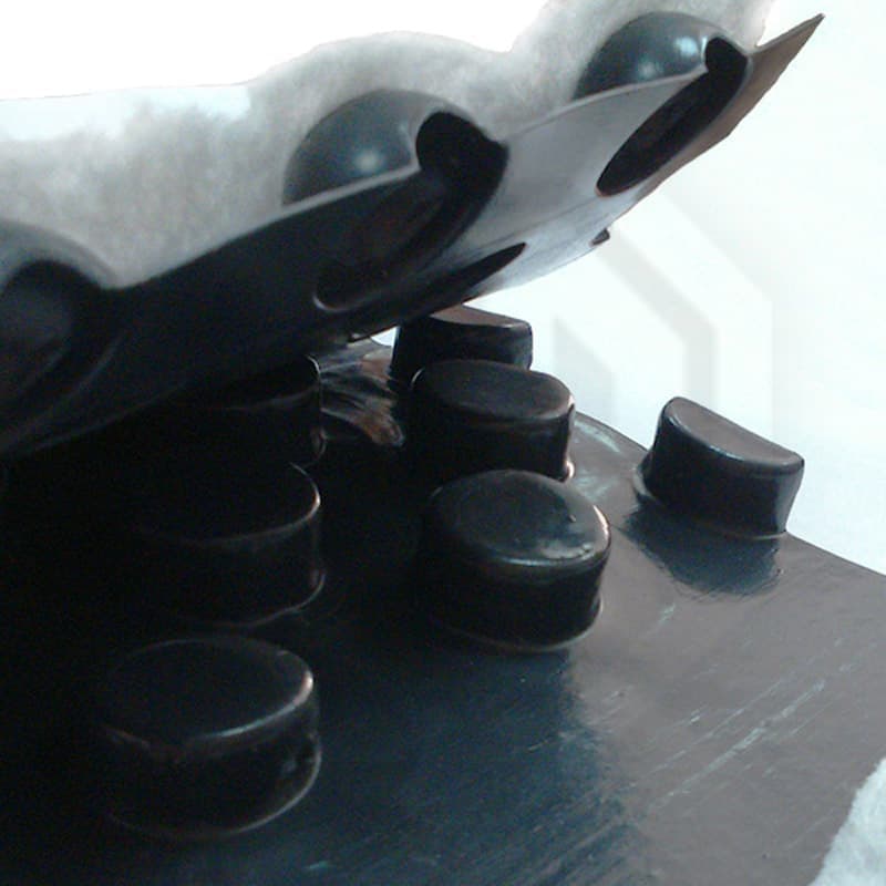 Сверху, на полусферы прикрепляется слой нетканого геотекстиля.