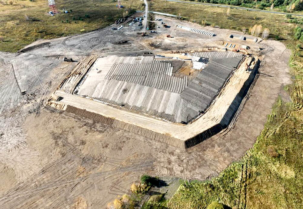 С помощью геомембраны была создана гидроизоляция отходов, ведь геомембрана не пропускает жидкости и является отличным гидроизолирующим материалом.