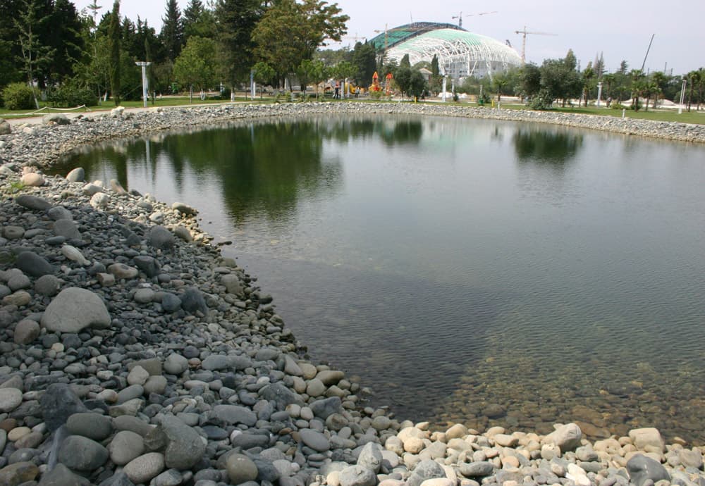 Возле отеля «Азимут» (г. Сочи), в 2013 году был создан водоем для полива. Материалы, для его строительства, поставила группа компаний «Геопродукт».