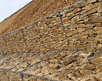 Габионы – это конструкции, созданные из сетки двойного кручения, наполненные природным камнем.